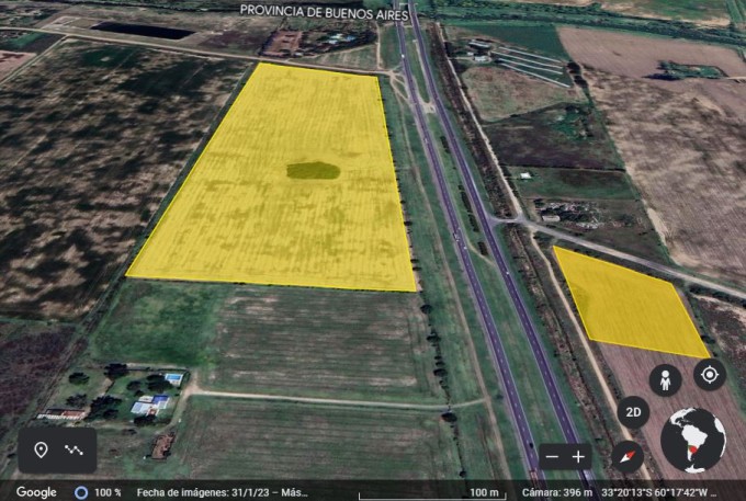Se vende espectacular campo de 13 hectáreas sobre la Autopista N° 9. Son dos lotes, uno de 12 hectáreas mano Rosario - Buenos Aires y 1 hectárea mano Buenos Aires - Rosario.