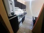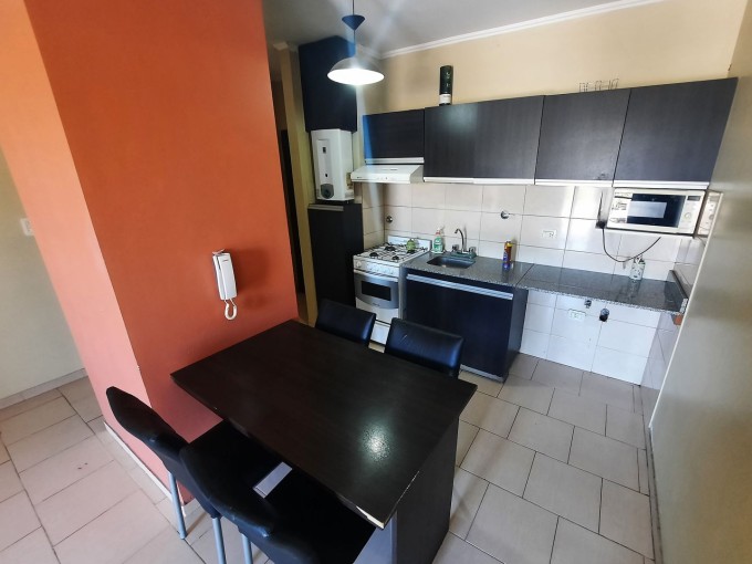 Living-comedor con cocina integrada con espacio para lavarropas.