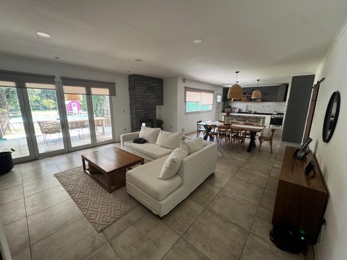 Bella propiedad ubicado en Cumelen. Toma/permuta por casa. Medidas 37.50 x 65, lote 2464 m2, 150 m2 cubiertos. Cuenta con 3 dormitorios (1 vestidor), ante baño, baño completo, amplia cocina/living/comedor integrado con hogar, quincho semicubierto con parrillero, pileta y amplio parque verde. Construccion nueva. Pisos de porcelanato. Hermosa propiedad y zona.