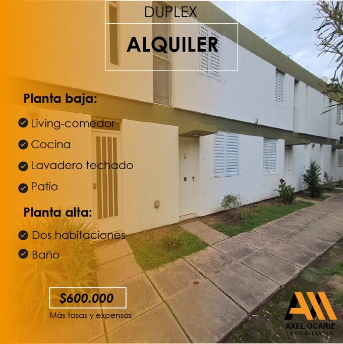 Duplex Planta baja: Cocina - Living-comedor - Lavadero techado - Patio. Planta alta: Dos habitaciones - Baño. ALQUILER $600000 + TASAS MUNIIPALES + EXPENSAS.