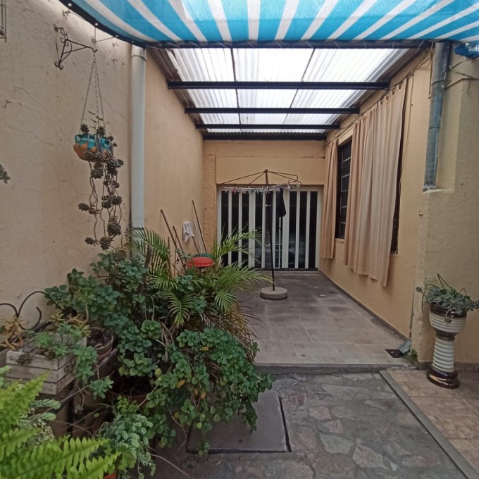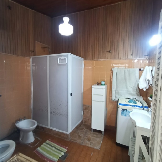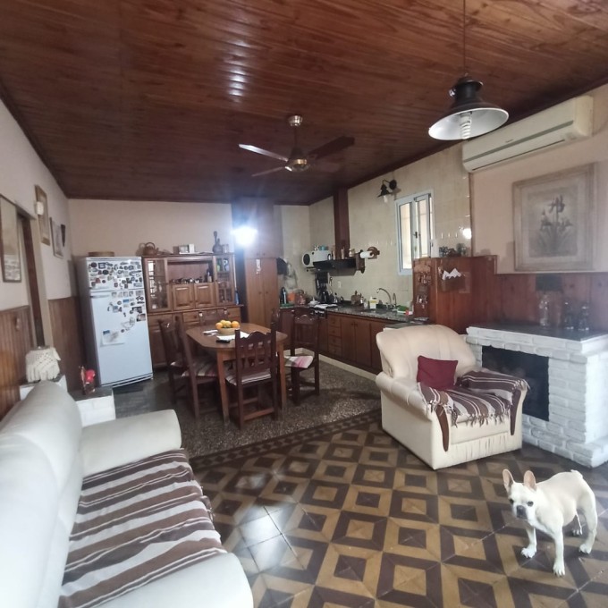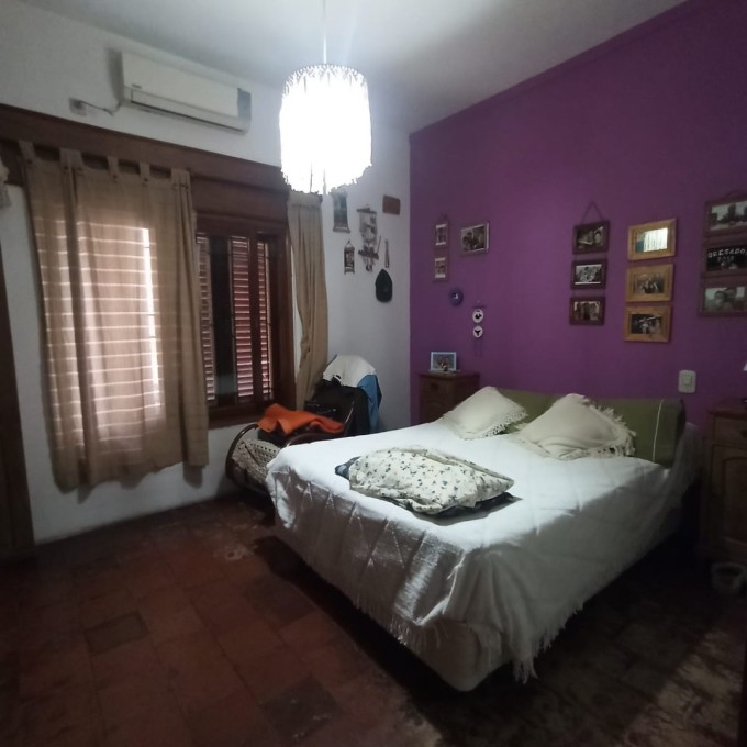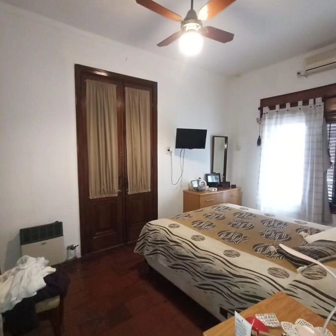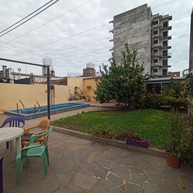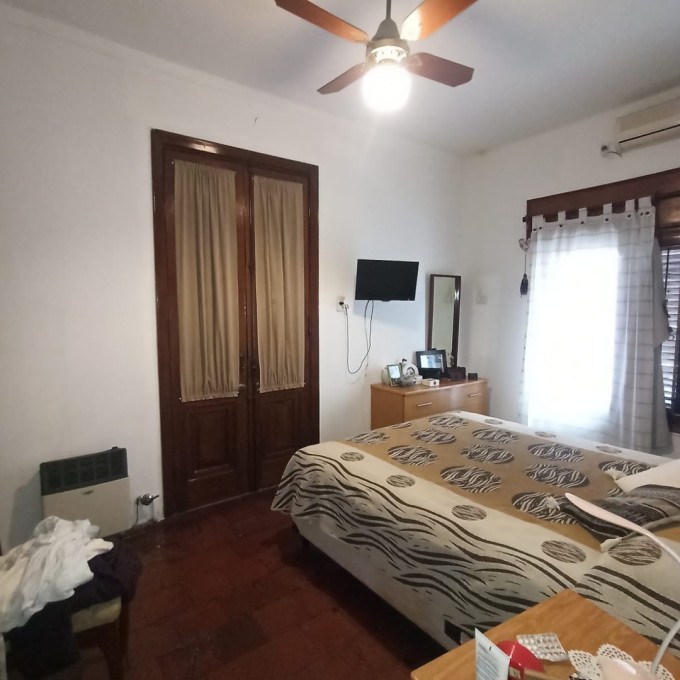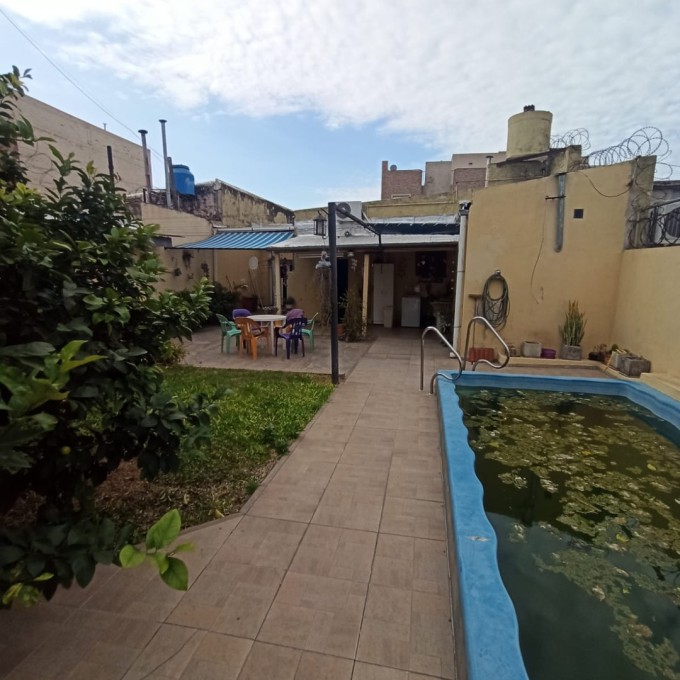 Cochera para dos autos pasante. Living comedor, distribuidor, 3 habitaciones (una con vestidor), baño completo. Patio verde con pileta y quincho. Galería techada con lavadero y baño externo. Techos de losa, chapa en la cocina, pisos de época calcáreos y granitos. Escritura ok.