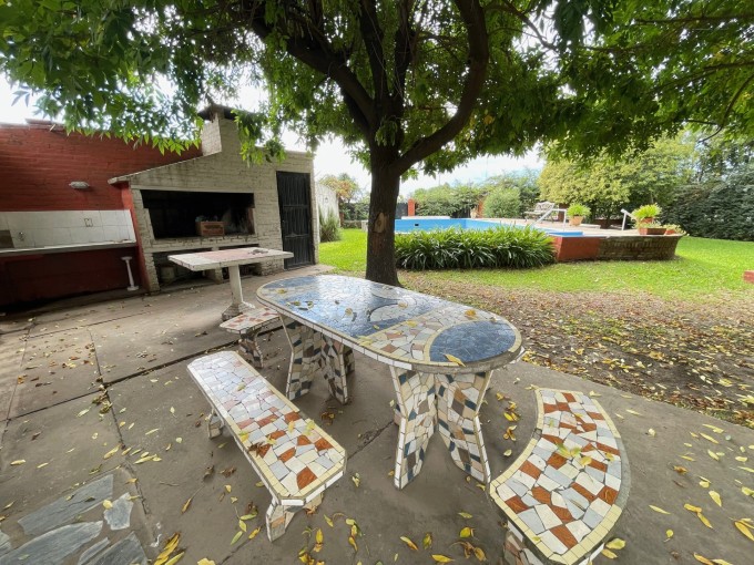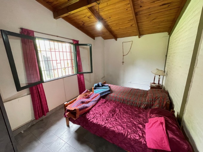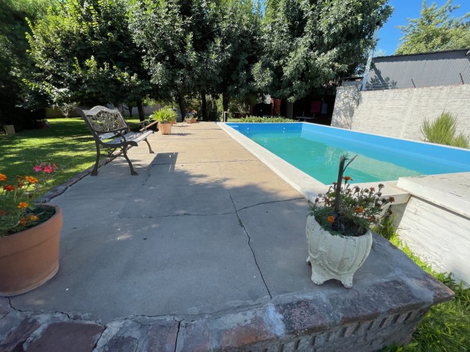 Casa de dos dormitorios, cocina comedor, baño, galería y gran parque forestado con piscina de material y parrillero.-