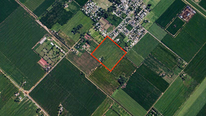 Casa alquilada.- Campo arrendado con soja / trigo.- Zonificación R/A.-
