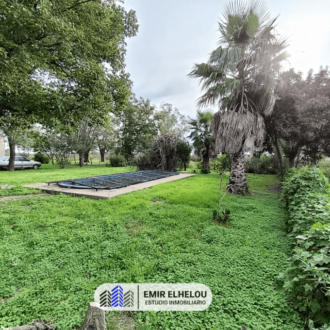 Son dos lotes, uno de 5,5 hectáreas que cuenta con un casco de estancia, galpón de 12 mts x15 mts (medidas aprox.) y pileta. Y otro lote de 3,5 hectáreas de uso 100% agrícola.